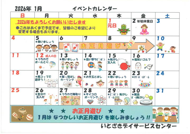 1月も楽しいレクリエーションやイベントを企画しています。 どうぞお楽しみに♪
